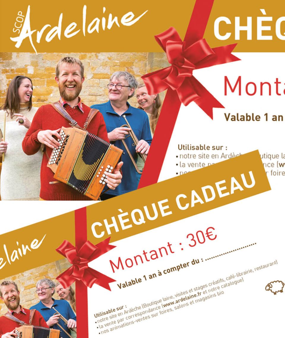 Les chèques-cadeaux Ardelaine sont disponibles en 30 € ou 100 €, cumulables entre eux. Ils sont valables un an à compter de la date d’achat, non remboursables et utilisables en une seule fois.