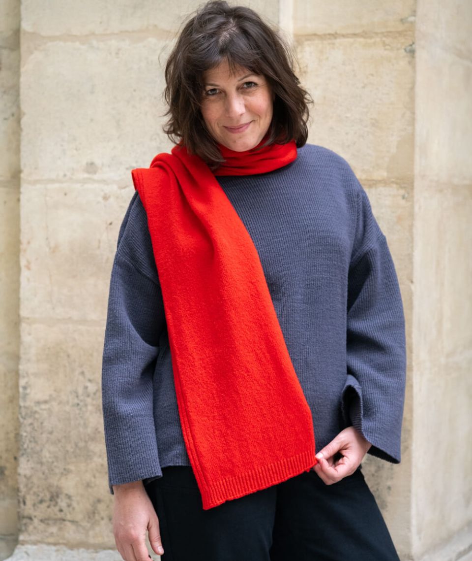 Enveloppez-vous de douceur et de chaleur avec cette écharpe en laine mérinos française, un accessoire artisanal qui accompagne vos tenues tout en vous protégeant du froid.